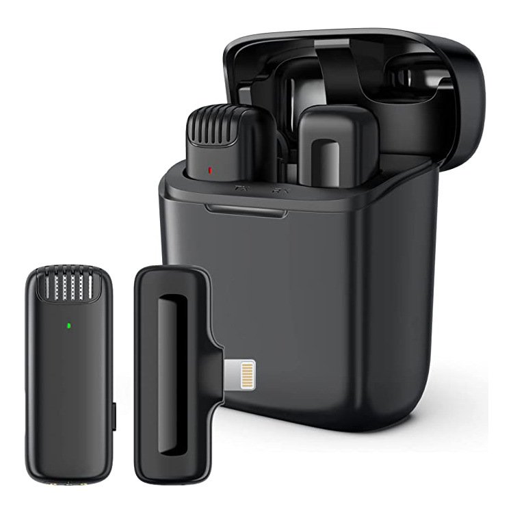 ไมโครโฟนลาวาเลียร์ไร้สาย พร้อมกล่องชาร์จ